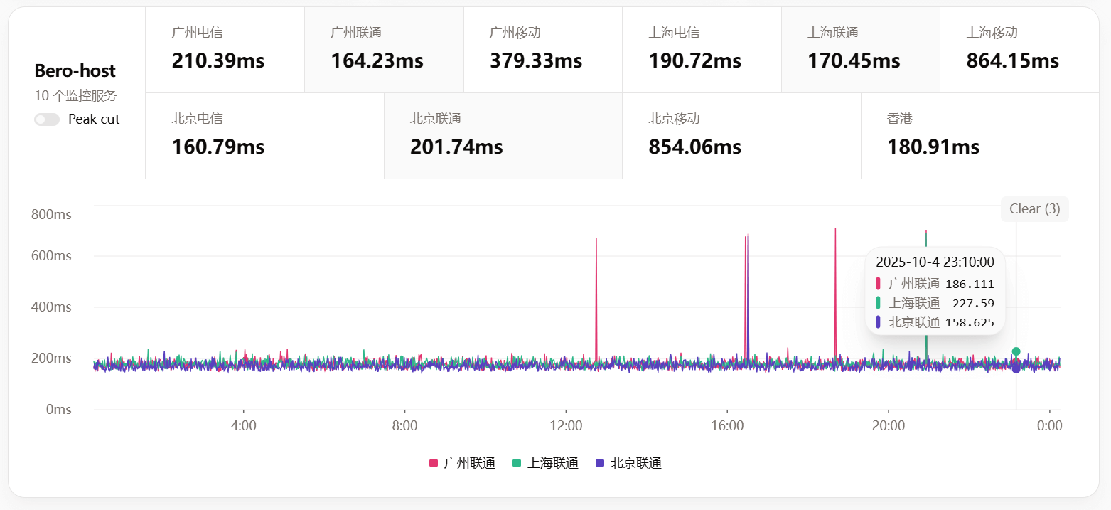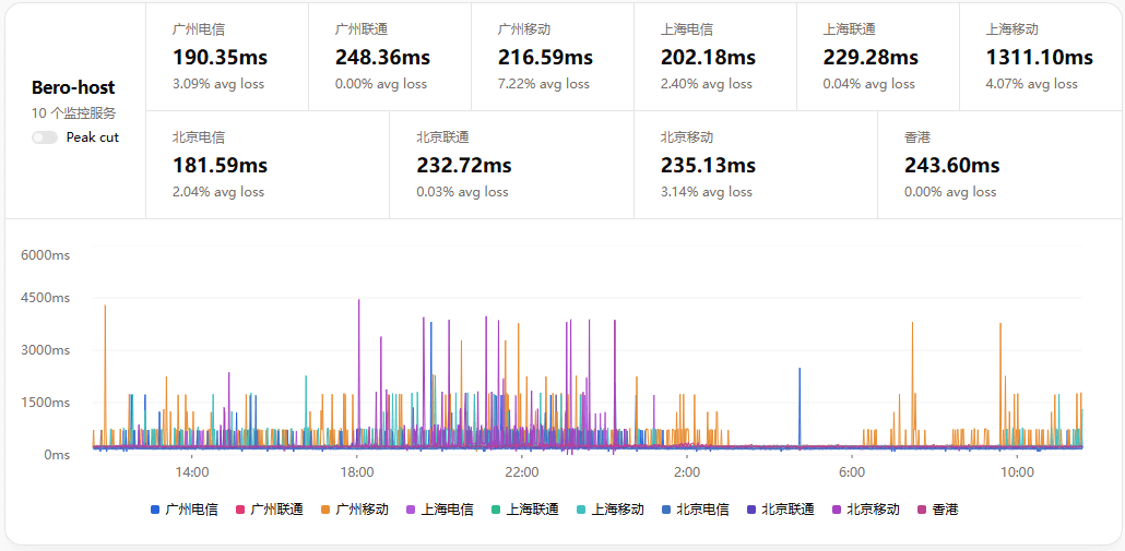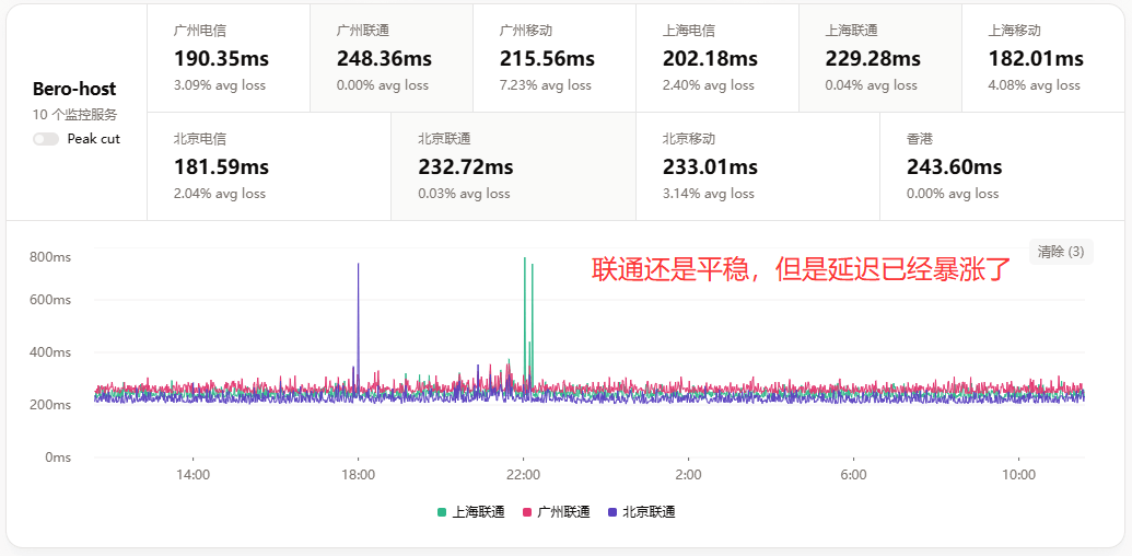 三网延迟都比较一般,联通倒是平稳,但延迟变高了!