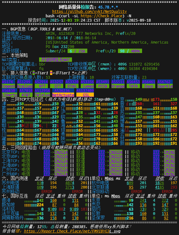 3 0.25ms 45.78.*.* AS25820 美国 加利福尼亚州 洛杉矶 it7.net