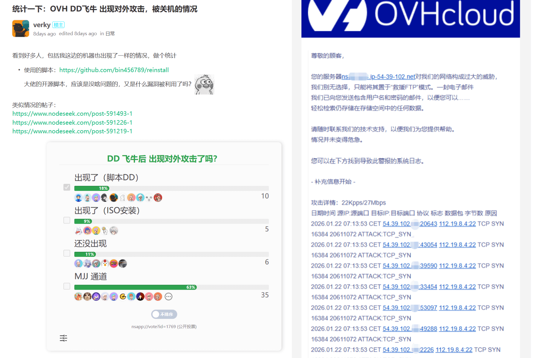 有很多使用 OVH 杜甫安装飞牛 fnOS 的小伙伴,不少被暂停了机器,原因是对外攻击: