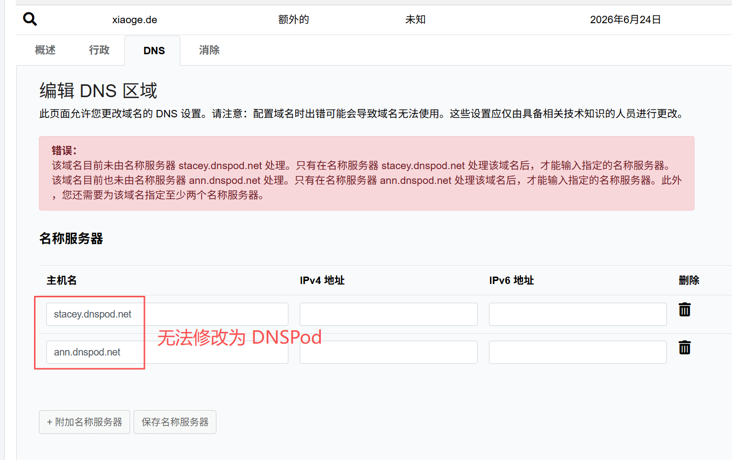 国内的多数 DNS 服务器(例如DNSPod、华为等)NC 是不支持的,要么直接无法修改,要么修改后一直不生效!